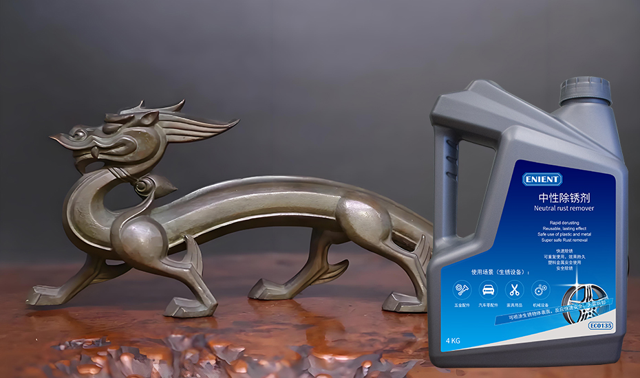 怎么快速去除黃銅擺件銹蝕?ENIENT®EC0135快速去除黃銅擺件銹蝕的產(chǎn)品應(yīng)運(yùn)而生。這款除銹劑是一款專為黃銅設(shè)計(jì)的水基安全可噴涂除銹劑,能夠輕松解決黃銅擺件的銹蝕問題。與市面上其他化學(xué)成分較為強(qiáng)烈的除銹劑不同,這款除銹劑采用了環(huán)保配方,溫和不腐蝕材質(zhì),不會(huì)對(duì)黃銅物品造成二次損傷。因此,它成為了眾多家庭和專業(yè)人士的首選除銹產(chǎn)品。