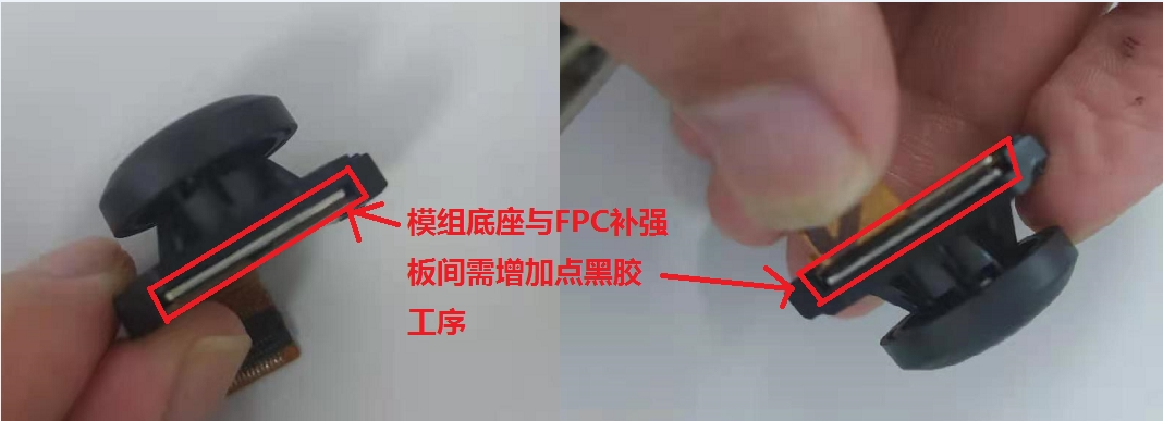 這里我們以某知名品牌的運(yùn)動(dòng)相機(jī)在組裝過(guò)程中遇到的FPC補(bǔ)強(qiáng)要求的案子為例,重點(diǎn)介紹對(duì)于FPC板組裝漏光問(wèn)題的補(bǔ)強(qiáng)方案及解決辦法介紹。對(duì)于相機(jī)行業(yè)的工廠來(lái)說(shuō),經(jīng)常會(huì)遇到光敏組件的漏光問(wèn)題。一開(kāi)始都不知道該怎么做,其實(shí)這塊也沒(méi)那么復(fù)雜。首先要了解漏光的原因,一般是因?yàn)橥鈿し庋b的時(shí)候有縫隙,容易透光進(jìn)去,因此只要找到漏光的縫隙,然后用簡(jiǎn)單低成本的方法將縫隙填補(bǔ)就可以了。本案例使用的方法的是用黑色膠水將縫隙填充密封,這里使用的膠水是單組分黑色電子粘接密封膠(溶劑橡膠型)ENIENT®EG105。